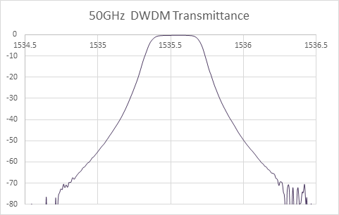圖2:永鼎光電子50GHz DWDM TFF透射光譜